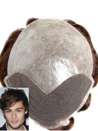 Our hairpiece for men is great because it has a French lace front with a PU back and sides. The premium design of the double layer front and hand-sewn stitching makes this French lace men's hair system highly durable and easily maintainable. This French lace hairpiece is totally breathable and thus perfect for people who live in a warm climate. The 1/2" single layer lace front and bleach knots make the hairpiece natural and undetectable. The PU back and sides help hairpiece easy to apply on the head. French lace hair systems for men simply cannot get faster than this!
