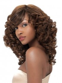 Long Wavy Afro-Hair Lace Front Synthetic Wigs With Side Bangs 16 Inches