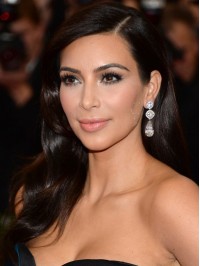 Kim Kardashian Wavy Long Lace Front Human Hair Wigs With Side Bangs